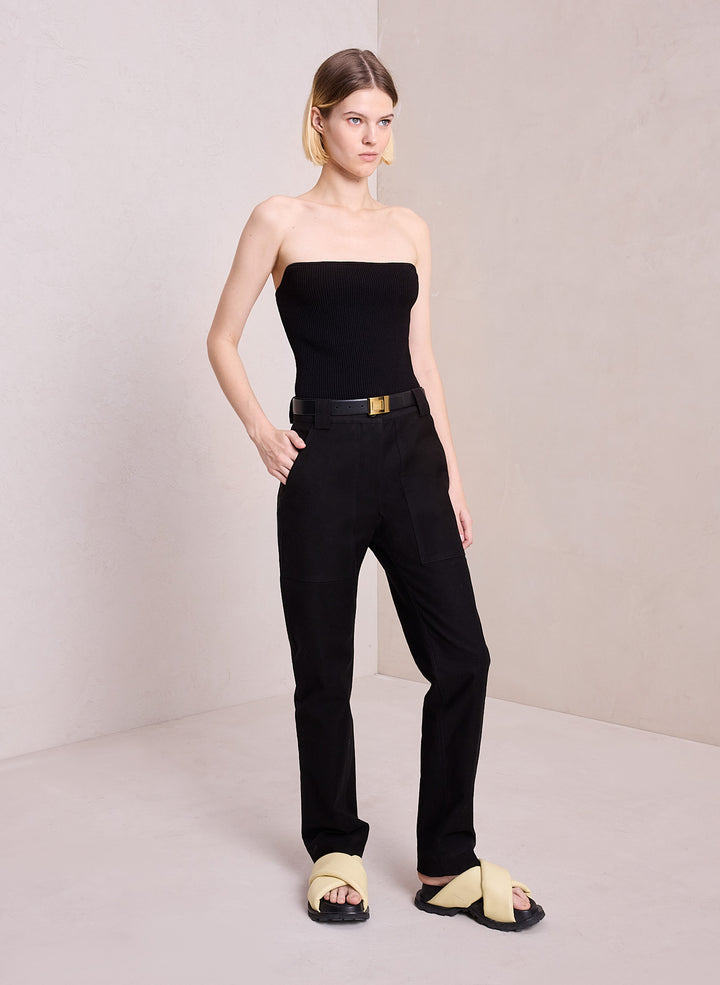 Styling Tip: Juxtapose with roomy knits and draped blazers to highlight the slim, structured silhouette of the pant.