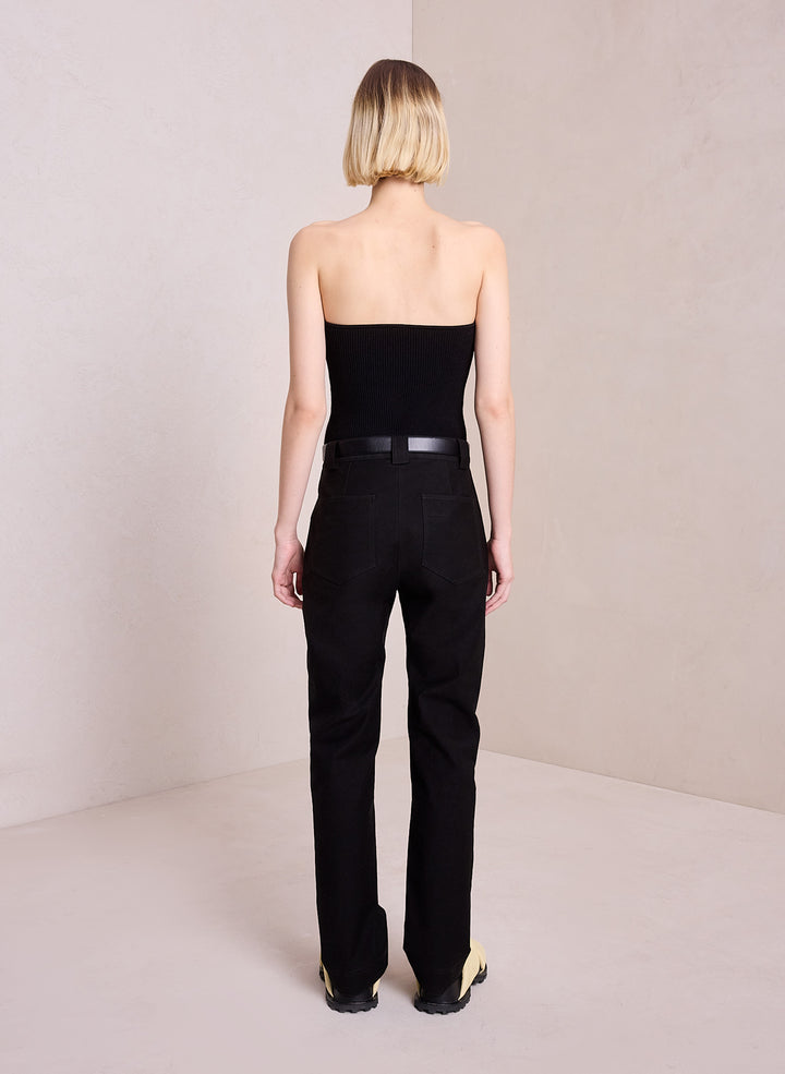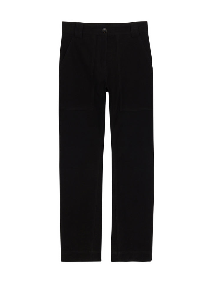 DescriptionThe Halston Pant is crafted from a compact stretch cotton blend fabric in essential black. This mid-rise utility-inspired silhouette features a slim, flat-front leg with functional hip pockets for a modern yet feminine take on workwear-inspired dressing. Shop Bottoms