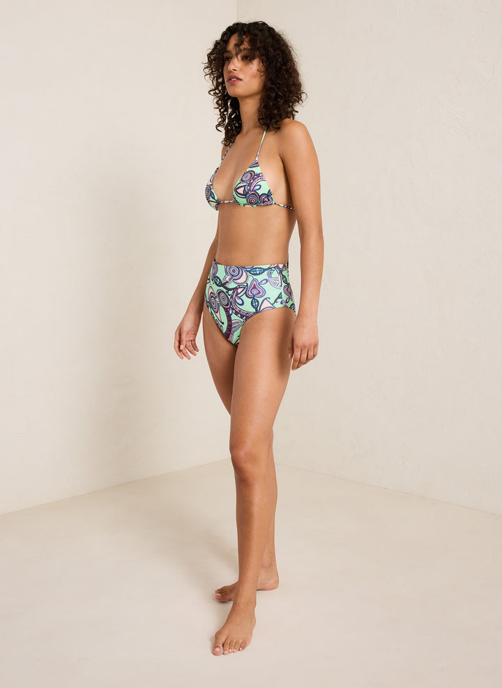 DescriptionThe Devin Triangle Bikini Top is crafted from our soft recycled nylon blend in a printed purple and mint motif for a timeless two-piece look. Shop Swimsuits