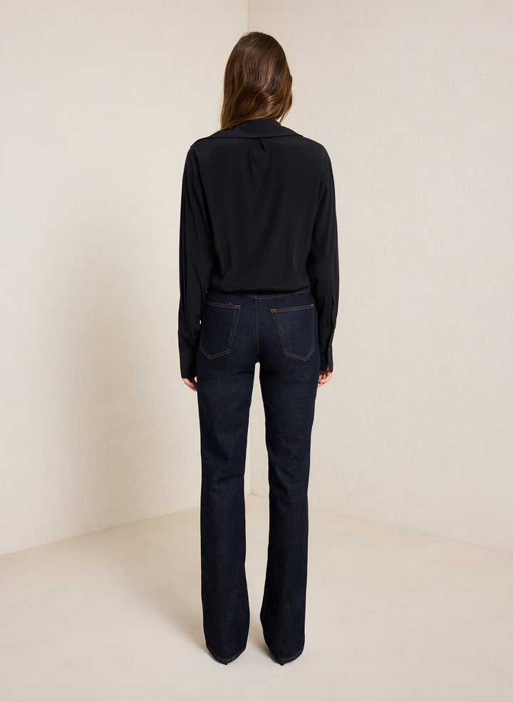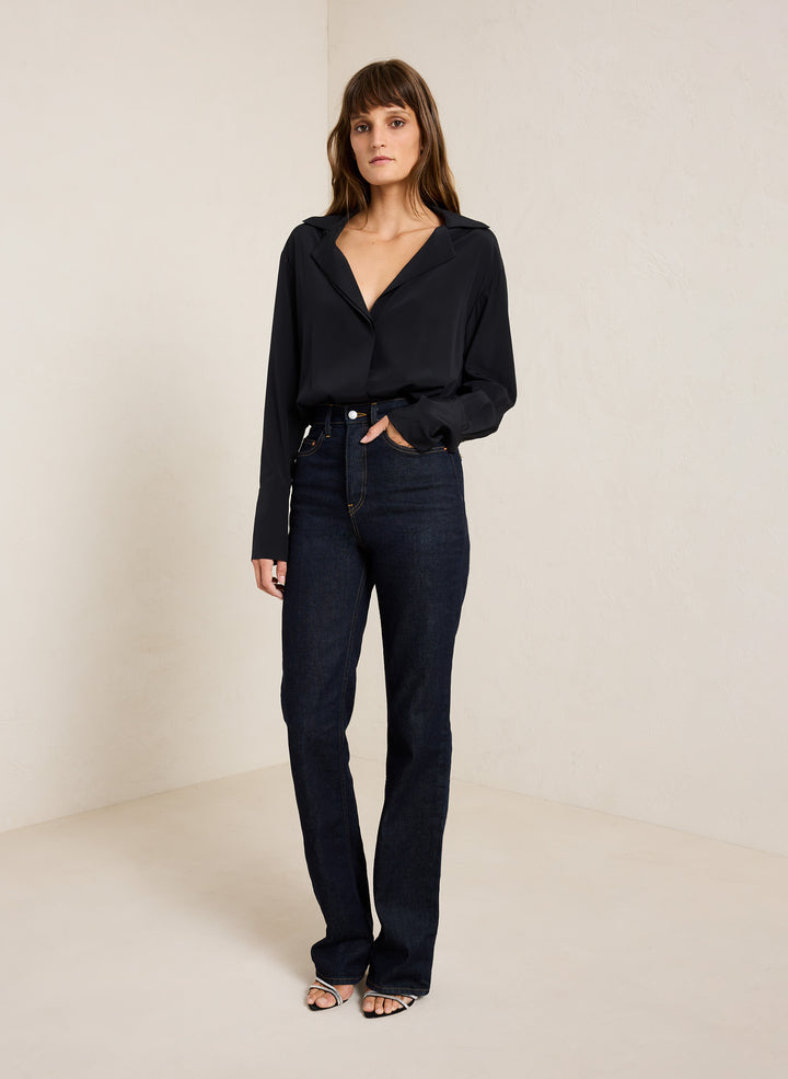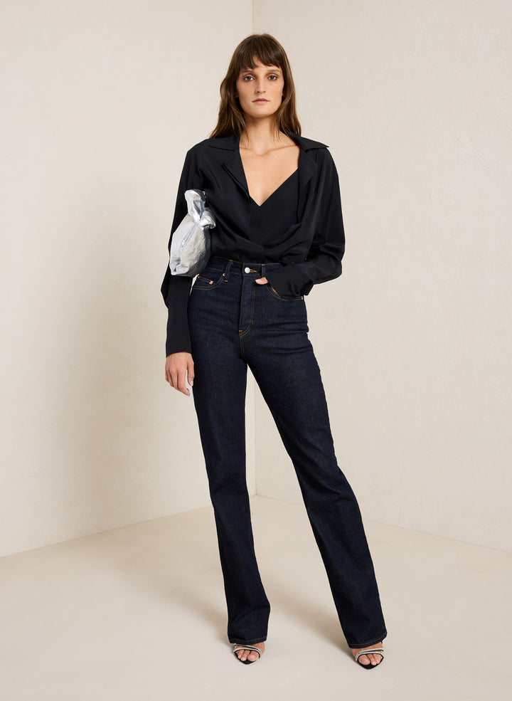 DescriptionThe Charlie Jean is crafted from dark-rinse raw denim with a hint of stretch. This high-rise silhouette features roomy but not baggy straight legs. Shop Bottoms