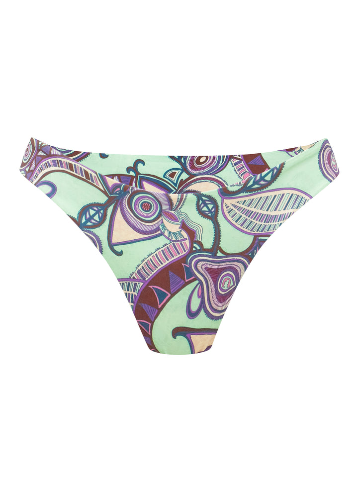 DescriptionThe Margot Bikini Bottom is crafted from our soft recycled nylon blend in a printed purple and mint motif. This minimal silhouette offers medium coverage with a classic rise. Shop Swimsuits