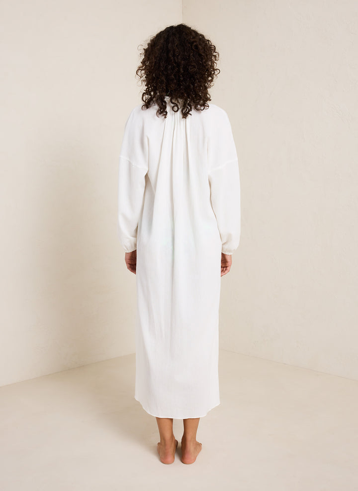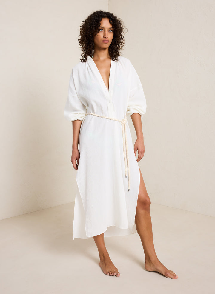 DescriptionThe Palma Coverup is crafted from our silk-cotton crinkle fabric in timeless white. This maxi silhouette is cut for a roomy fit, featuring a plunging V-neckline and voluminous long sleeves. Shop Swimsuits