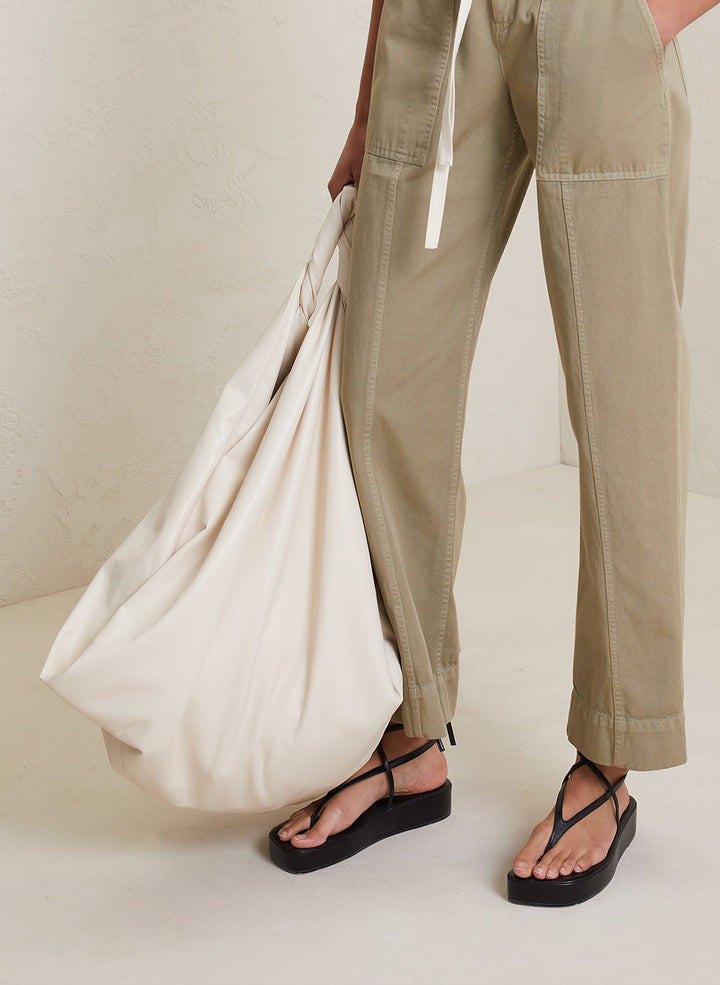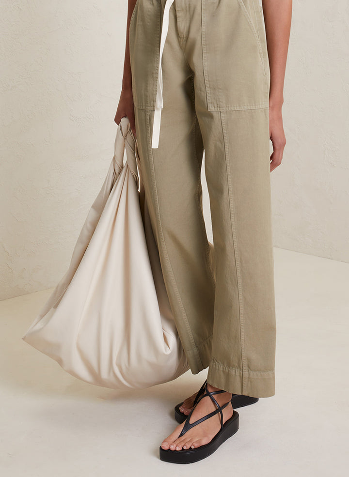 | The Lawrence Pant is made crafted from our stretch cotton fabric in a burnt terracotta hue. This straight-leg silhouette features a mid-rise that feels at once polished and relaxed. Shop Bottoms \n \nStyling Tip: Half-tuck in a white button and finish with colorful heels. |
