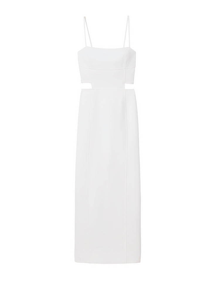DescriptionThe Dalton Dress is crafted from our structured cady fabric in bright white. This fully-lined midi silhouette features delicate straps and a square neckline with boxy side cutouts and a back slit for a sexy skin reveal. Shop Dresses