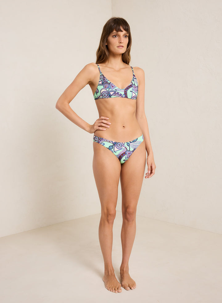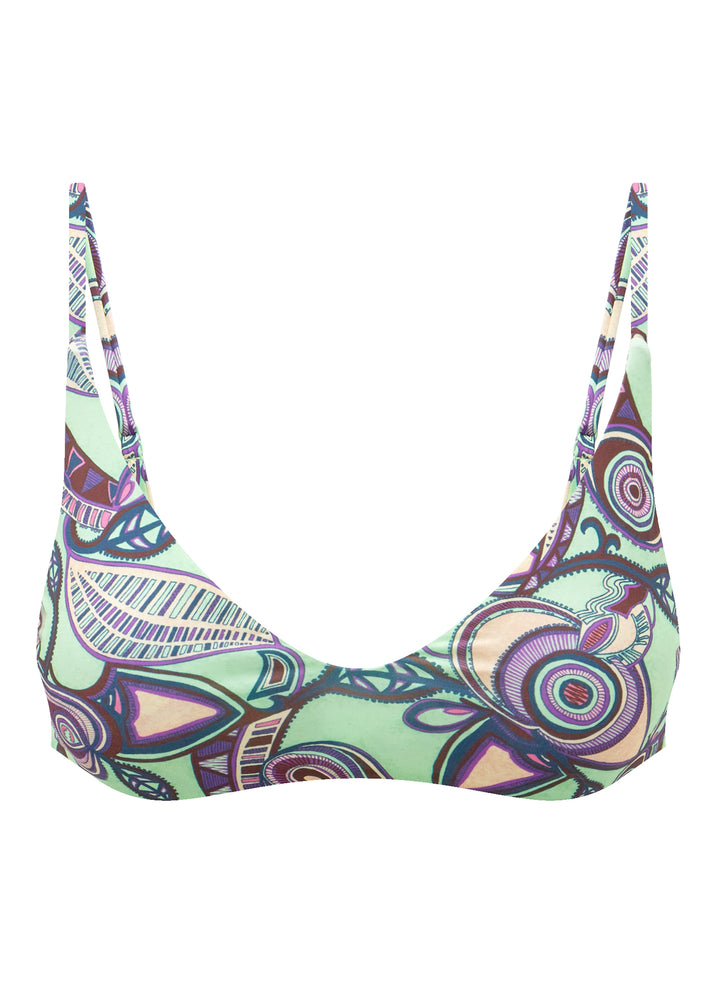 DescriptionThe Cleo Scoop Bikini Top is crafted from our soft recycled nylon blend in a printed purple and mint motif. This minimalist silhouette offers medium support and a sporty look. Shop Swimsuits