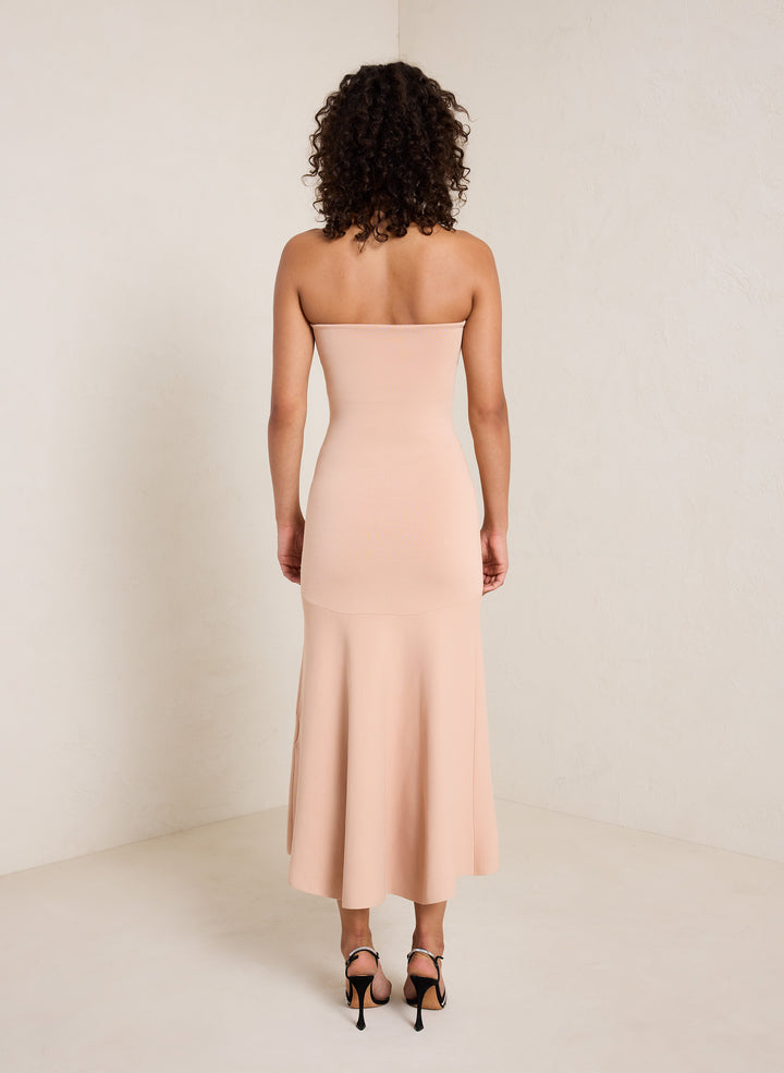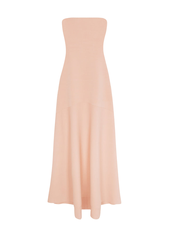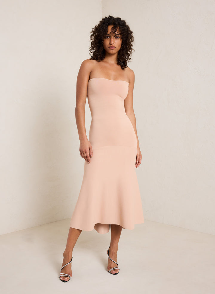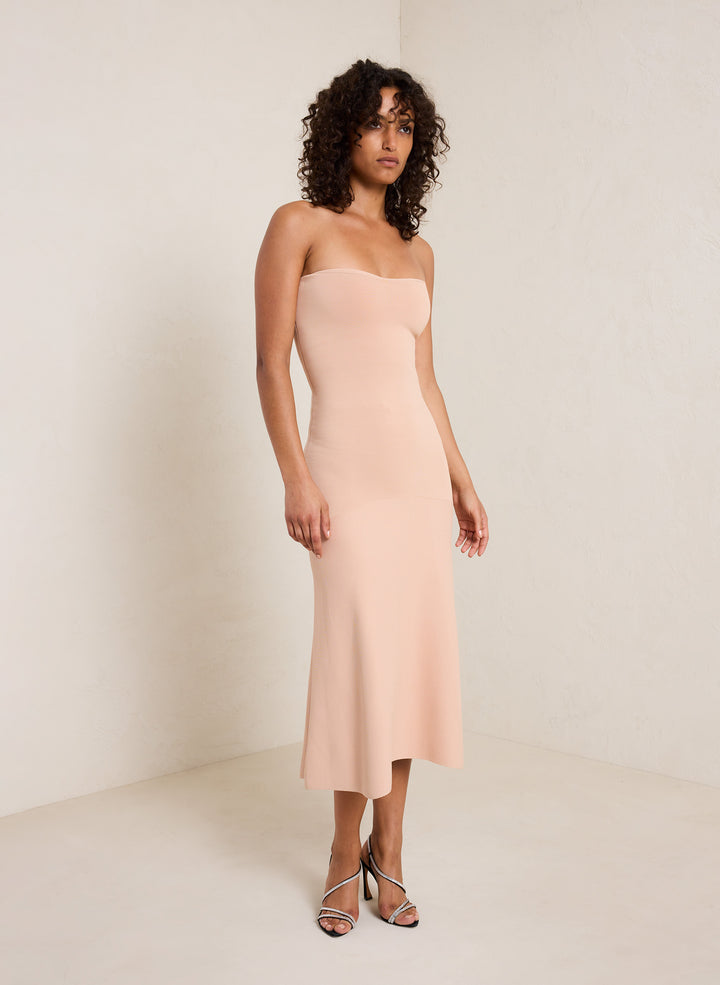 DescriptionThe Dress is knitted from our soft rayon fabrication in a pale pink hue. This strapless, midi silhouette has a built-in bra featuring a slight sweetheart neckline and dropped waist. Shop Dresses