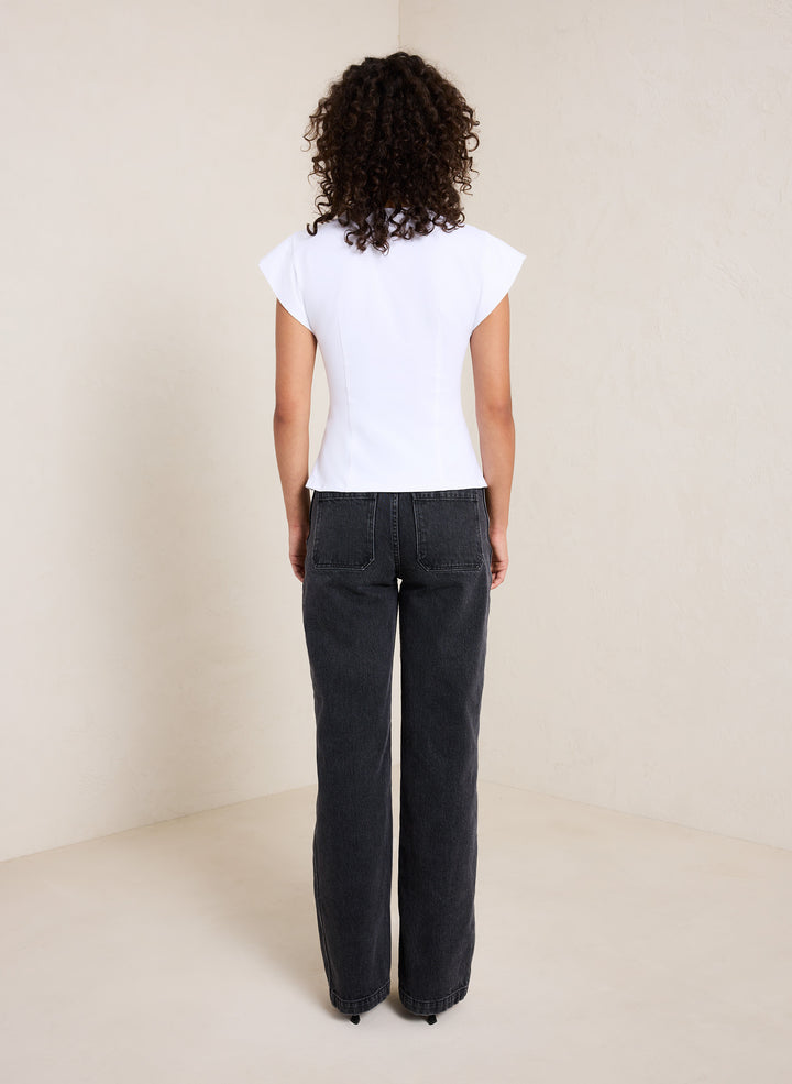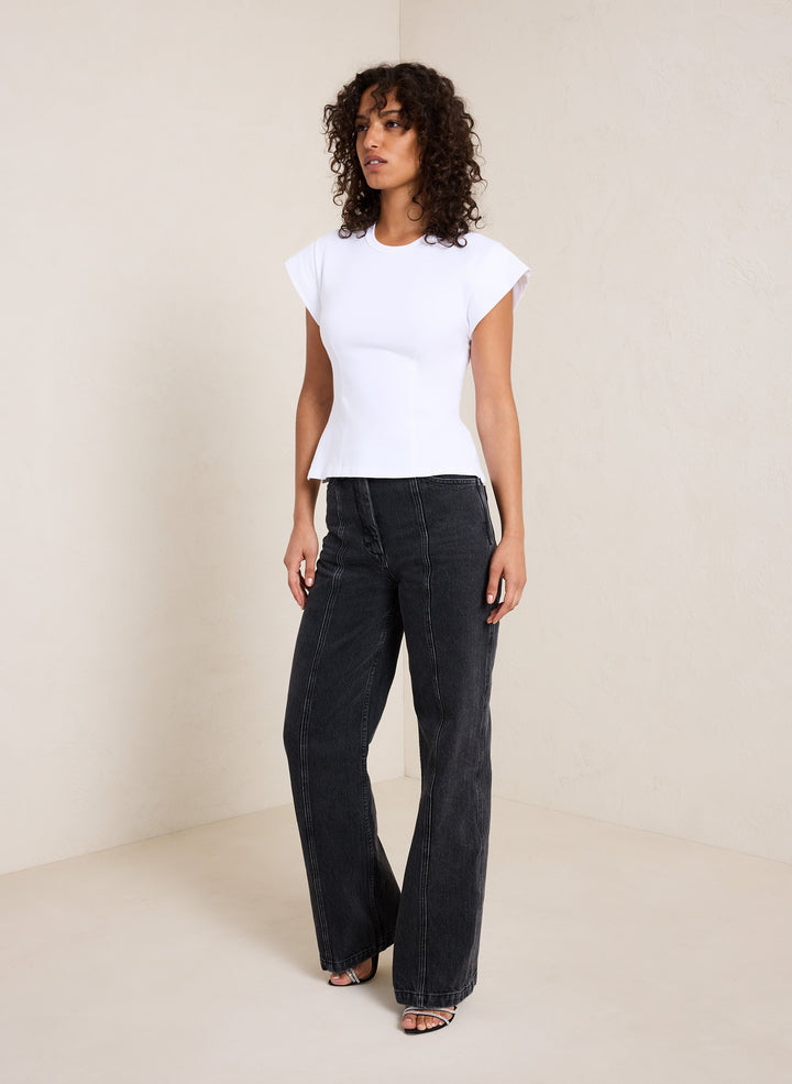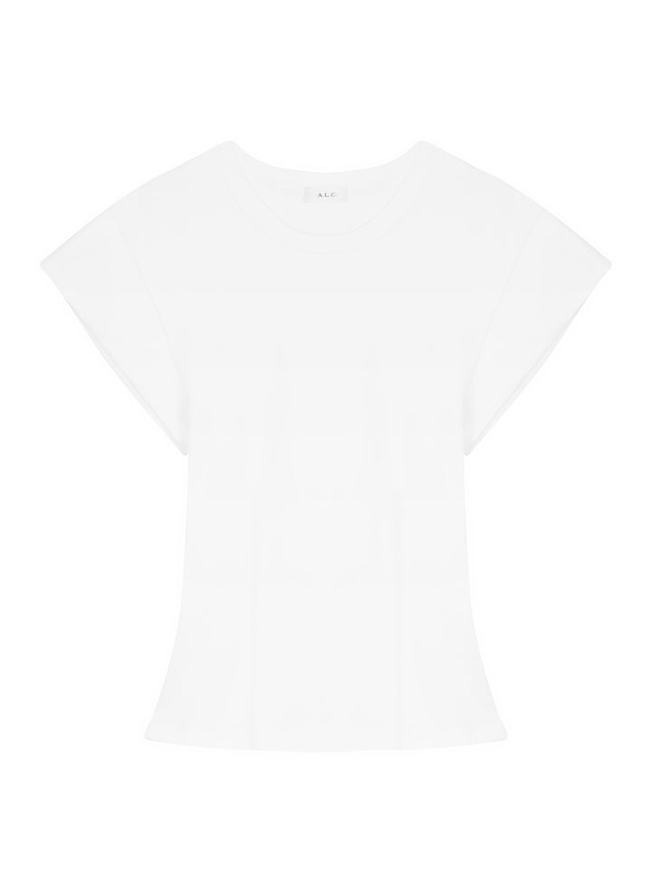 DescriptionThe Tanner Tee is crafted from 100% cotton fabric in wardrobe-essential white. This corset-inspired silhouette features a crewneck with structured cap sleeves and a fitted bodice with darted seams. Shop Tops