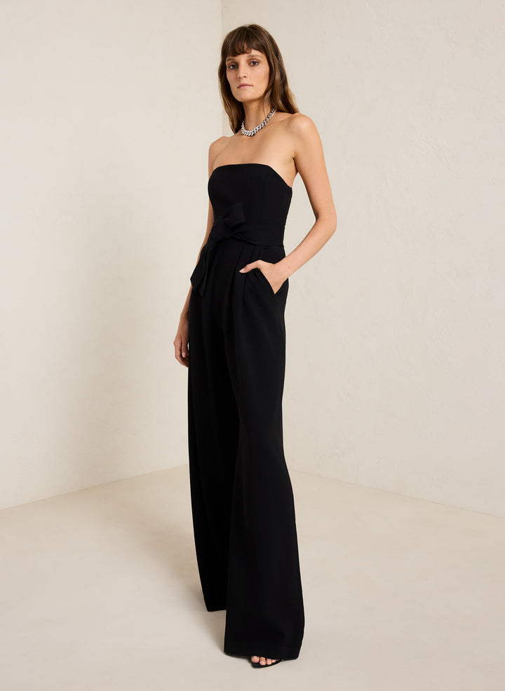 DescriptionThe Elsie Jumpsuit is impeccably cut from our stretch cady fabric in timeless black. This strapless silhouette features pleated wide legs with pockets and a detachable belt to highlight the waist. We recommend to size up one from your typical size. Shop Jumpsuits