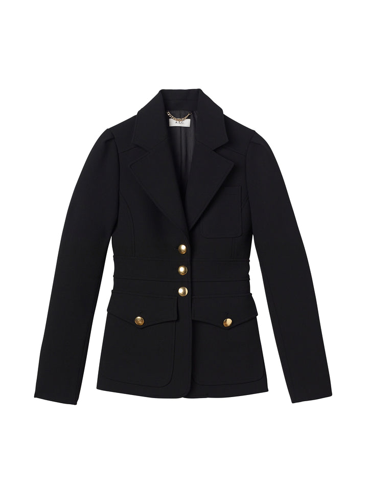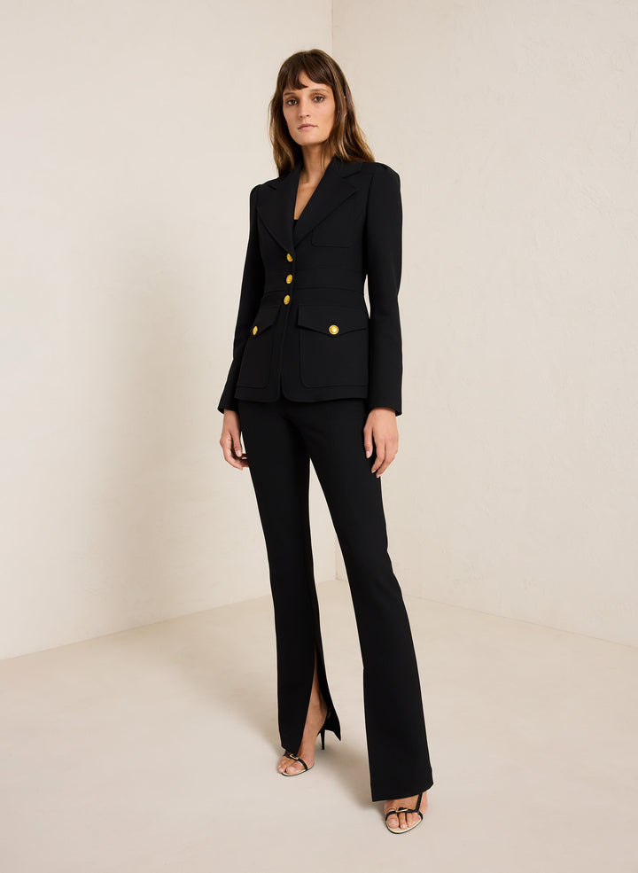 DescriptionThe Amelia Jacket is crafted from our stretch techno tailoring in wardrobe essential black. Blending structure and femininity, this signature staple features a fitted bodice, gold-toned buttons and a slightly puffed shoulder detail. ?Shop Jackets