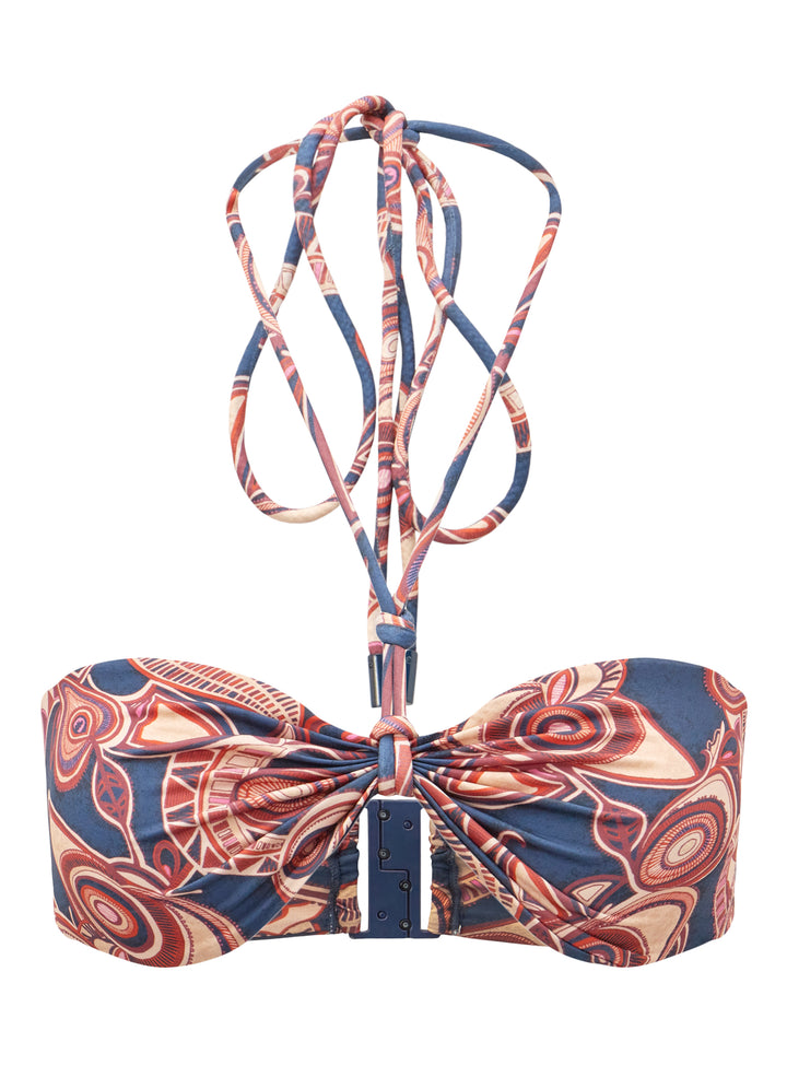 DescriptionThe Anita Bikini Top is crafted from our soft recycled nylon blend in a printed clay and navy motif. A knot detail accentuates the bandeau silhouette, featuring a halter neckline with adjustable ties. Shop Swimsuits
