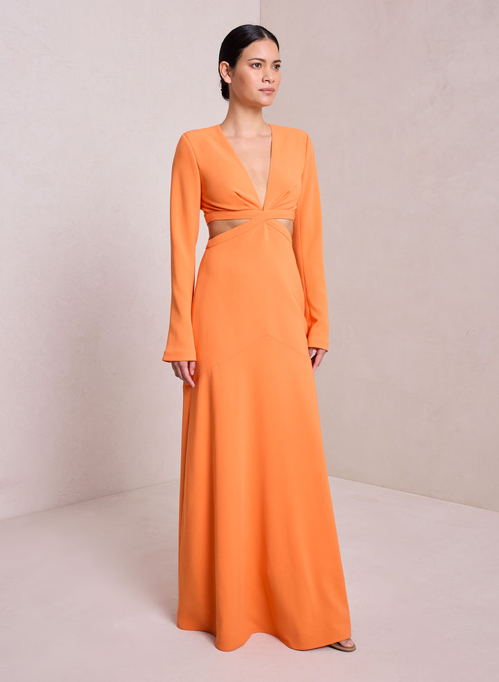 DescriptionThe Issa Dress is impeccably cut from fluid black fabric. This maxi silhouette, designed for elegant events, features long and slim sleeves, a plunging neckline, and waist cutouts that wrap around into an open back. Shop Dresses
