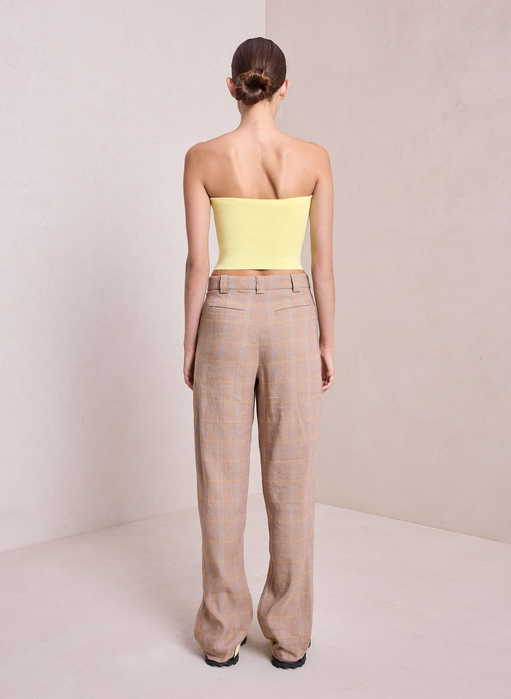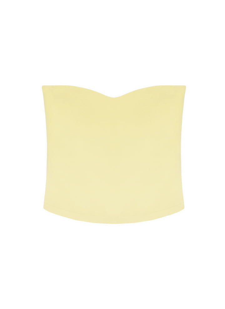 DescriptionThe Dean Top is crafted from our soft, signature compact knit fabrication in sunny citrine. This strapless silhouette has a built-in bra featuring a slight sweetheart neckline, bone corsetry, and cropped second-skin fit. Shop Tops