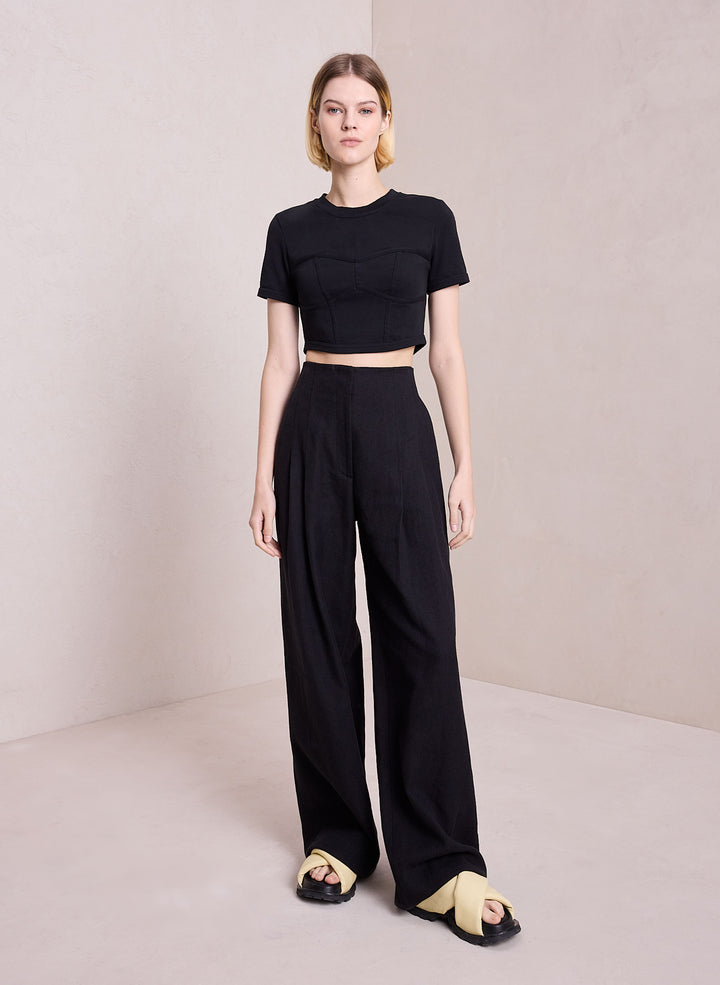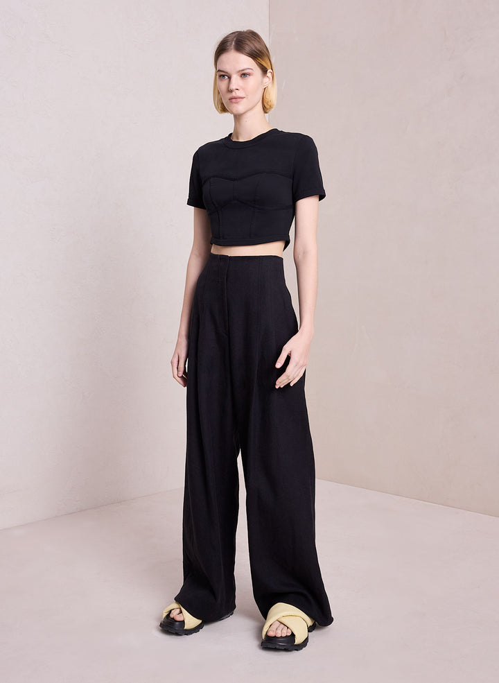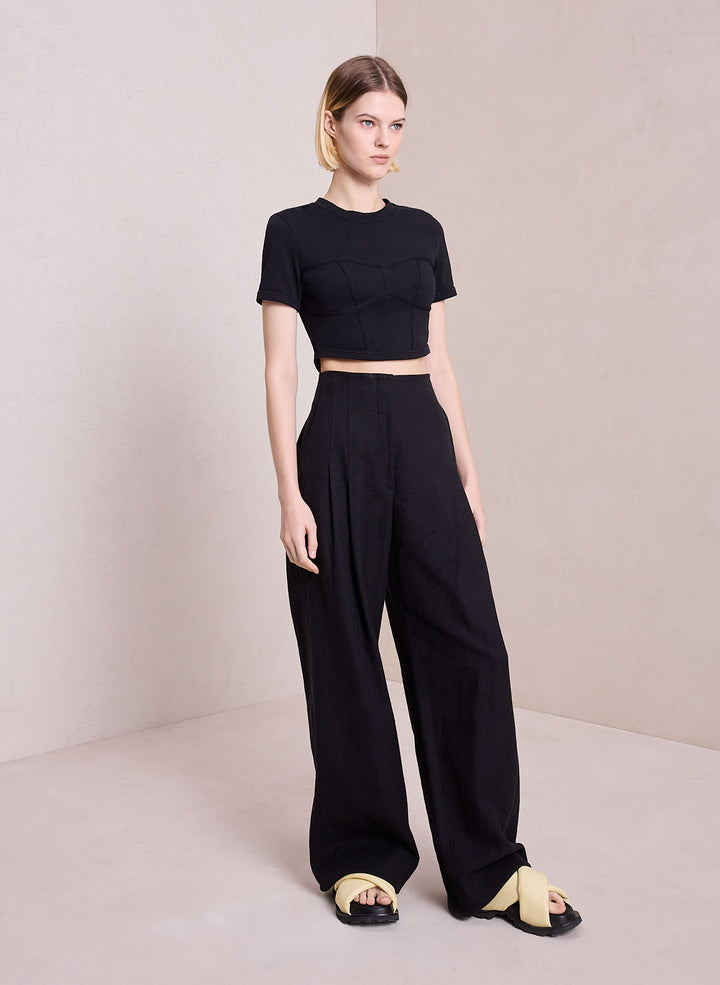 DescriptionThe Wren Tank is crafted from structured cotton jersey fabric in wardrobe-essential black. This cropped, short-sleeve silhouette features bustier-inspired seams and a high round neckline, coming to a subtle point in the back. Shop Tops