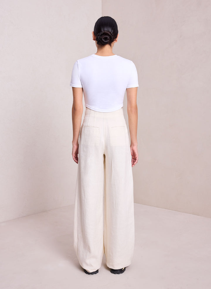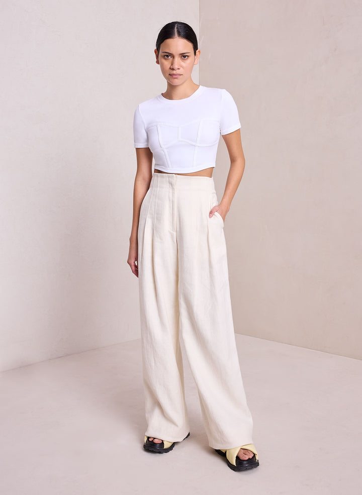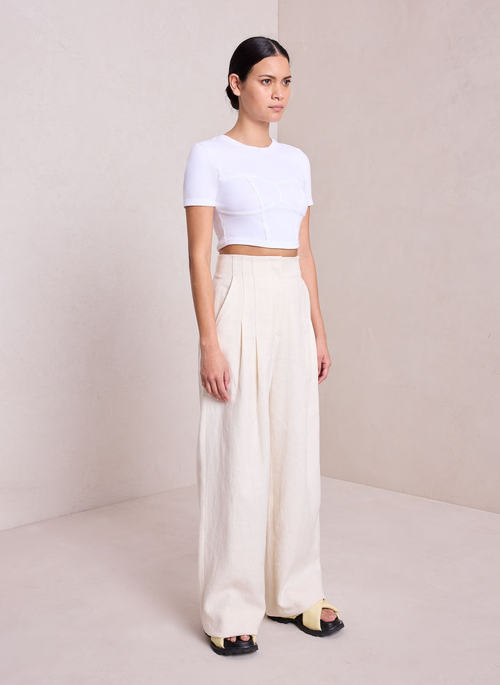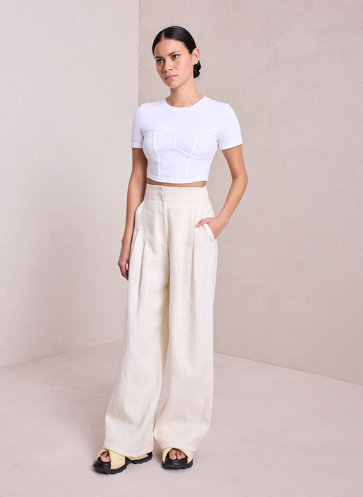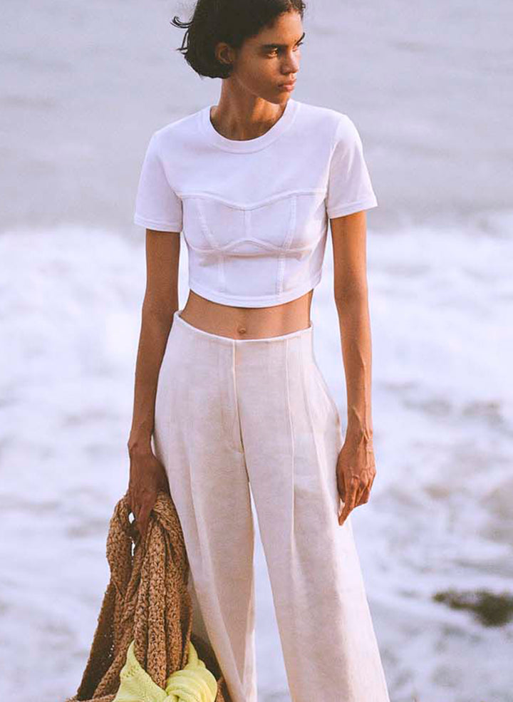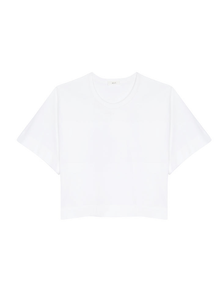 DescriptionThe Wren Tank is crafted from structured cotton jersey fabric in wardrobe-essential white. This cropped, short-sleeve silhouette features bustier-inspired seams and a high round neckline, coming to a subtle point in the back. Shop Tops