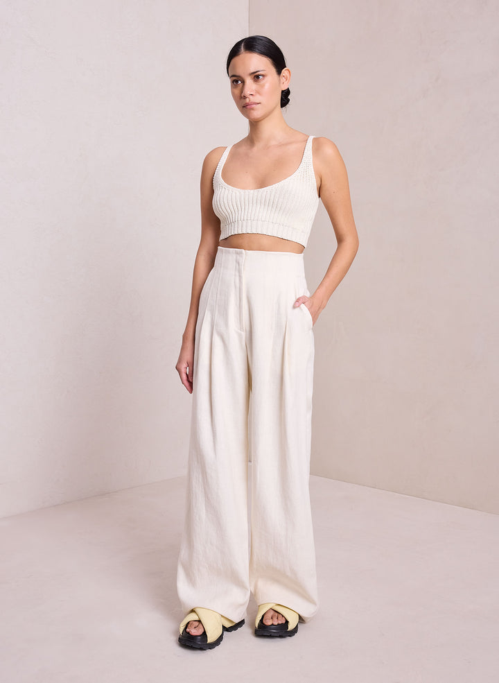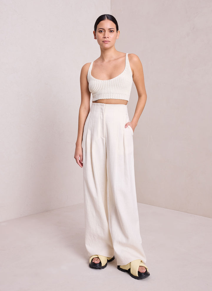DescriptionThe Tess Bra is crafted from a ribbed cotton fabric in off-white. This skin-baring silhouette is intricately knitted with a warm-weather feel, featuring a scoop neckline and inch-wide straps. Shop Tops