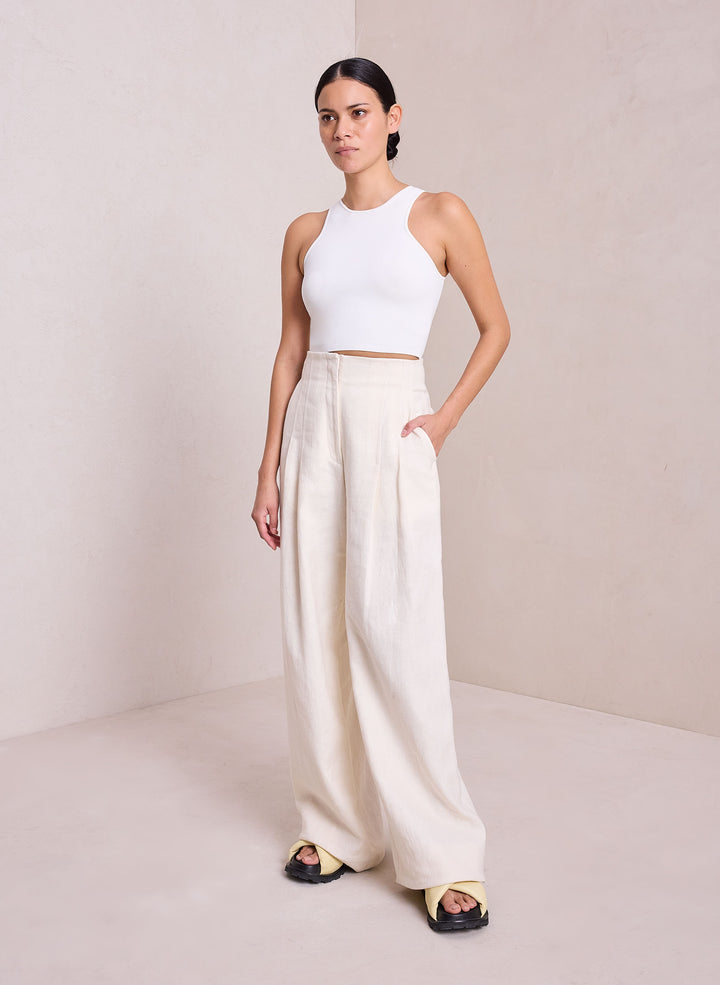 DescriptionThe Lola Top is crafted from our soft, signature compact knit fabrication in off-white. This cropped tank features a high neckline and racerback for a sporty-meets-minimalist aesthetic you can wear day or night. Shop Tops