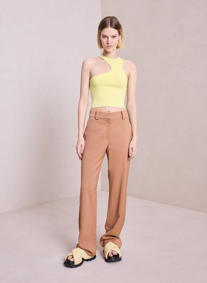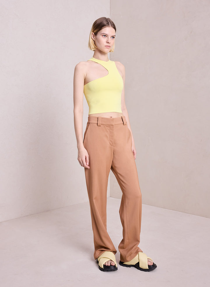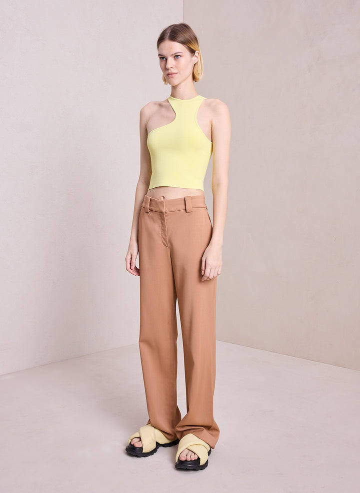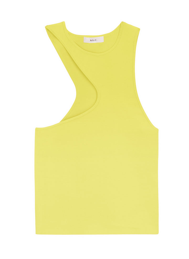 DescriptionThe Lara Top is knitted from our soft, signature compact knit fabrication in a citrine yellow. This modern racerback tank features asymmetric curves and a cropped fit for a sexy sportswear aesthetic. Shop Tops