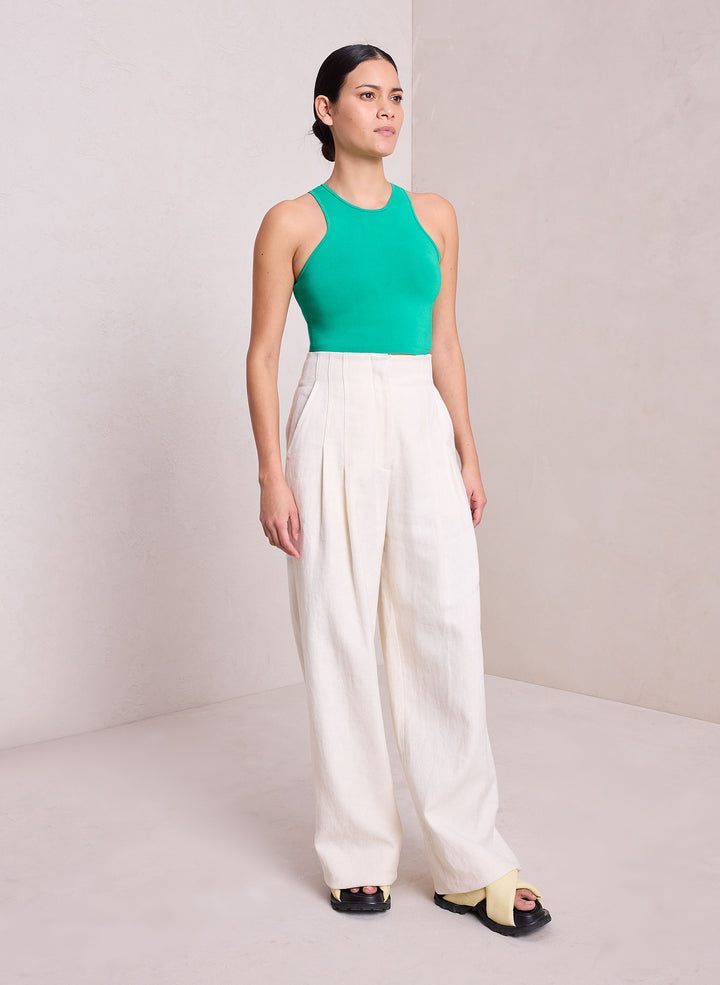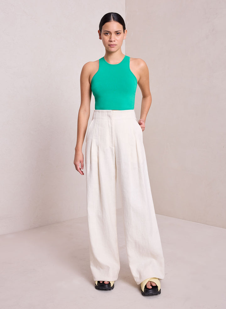 DescriptionThe Lola Top is crafted from our soft, signature compact knit fabrication in a vibrant green hue. This cropped tank features a high neckline and racerback for a sporty-meets-minimalist aesthetic you can wear day or night. Shop Tops