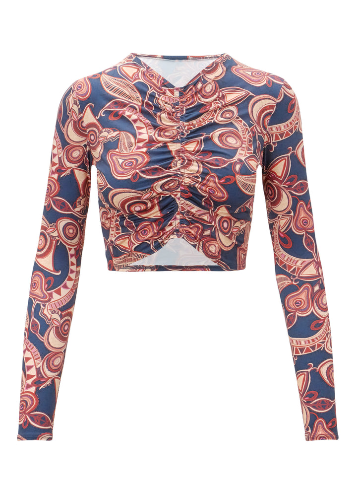 DescriptionThe Ansel Rashguard is crafted from our soft recycled nylon blend in a printed clay and navy motif, featuring long sleeves and ruched detailing. Shop Swimsuits