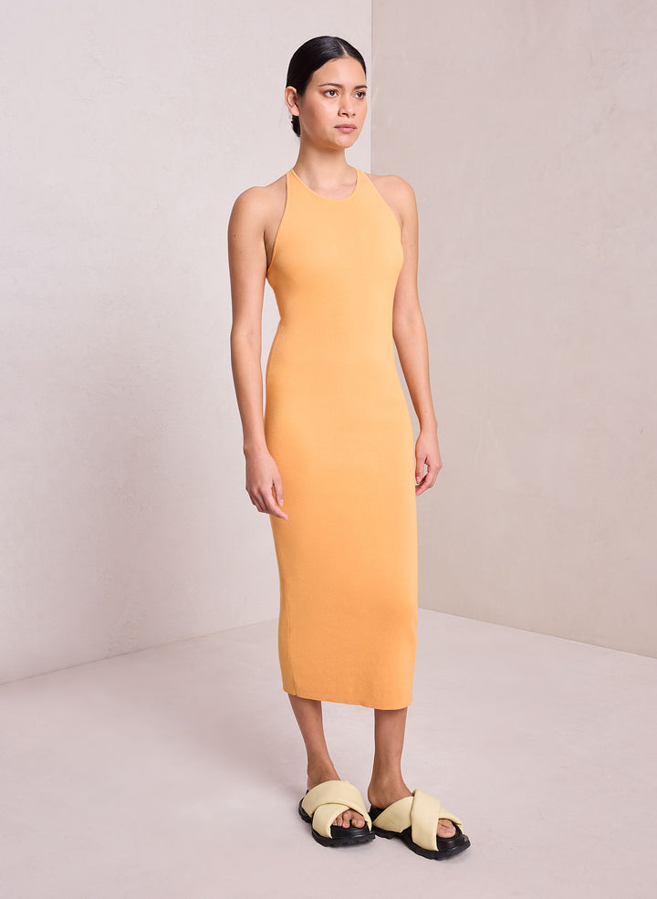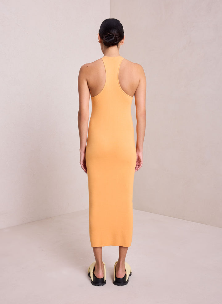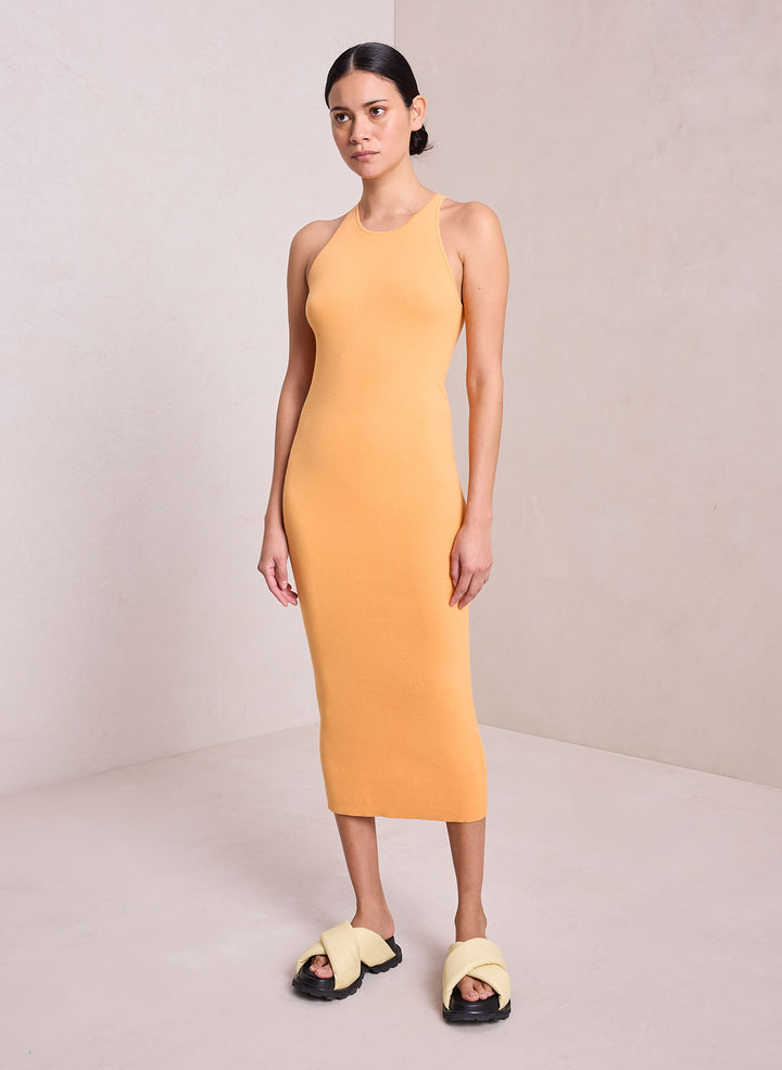 DescriptionThe Marc Dress is knitted from a stretch cotton-nylon blend in a cheery orange hue. The midi silhouette features a high neckline and racerback for a sporty-meets-minimalist aesthetic you can wear day or night. Shop Dresses