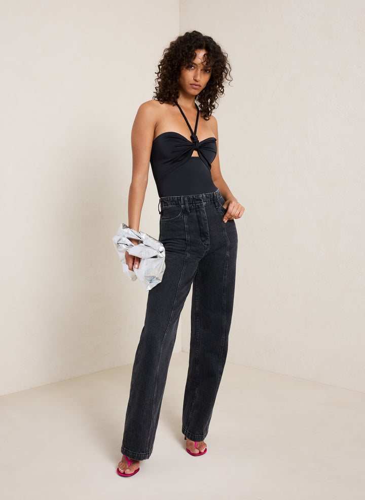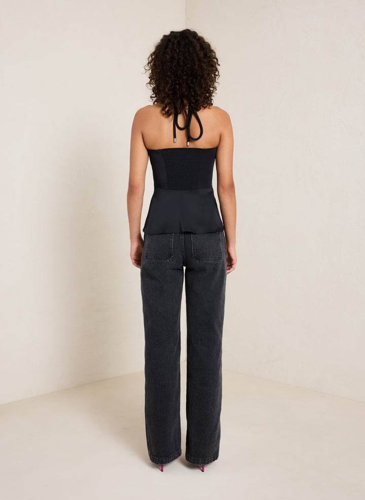 DescriptionThe Anita Top is crafted from our lustrous stretch satin in timeless black. This feminine silhouette, featuring a thick cord halter neckline and an alluring keyhole, can be tucked in or styled over waistlines to showcase its fluidity. Shop Tops