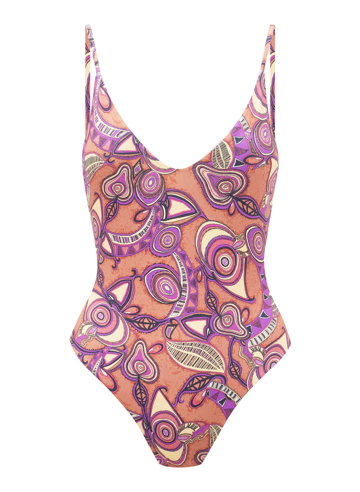 DescriptionThe Cleo Scoop Bikini Top is crafted from our soft recycled nylon blend in a printed purple and peach motif. This minimalist silhouette offers medium support and a sporty look.Shop Swimsuits